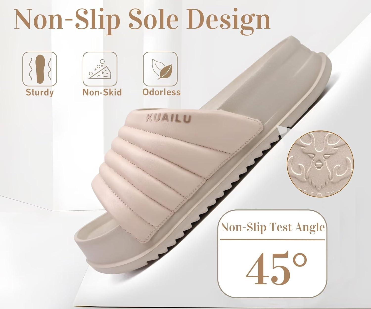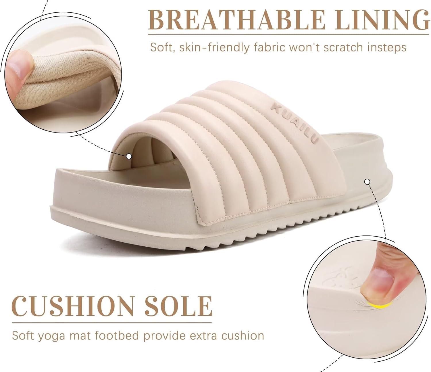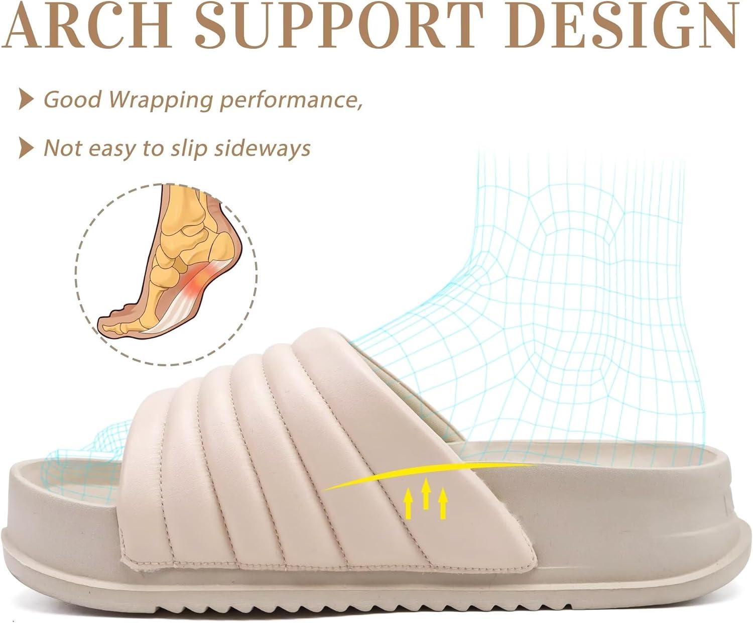 KuaiLu Womens Sandals with Arch Support Orthopedic Comfortable Lightweight Cushion Recovery Slides Summer Fashion Leather Casual Womans Plantar Fasciitis Sandals for Indoor&Outdoor (US Size 6-12)(Beige)