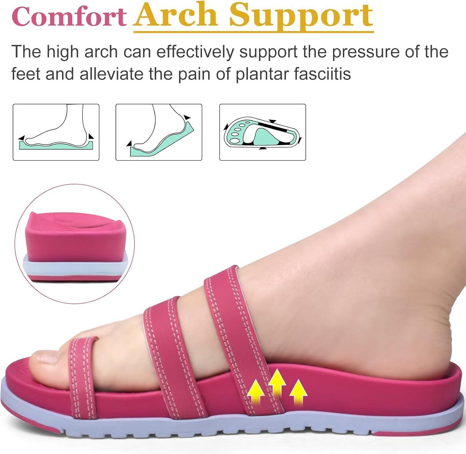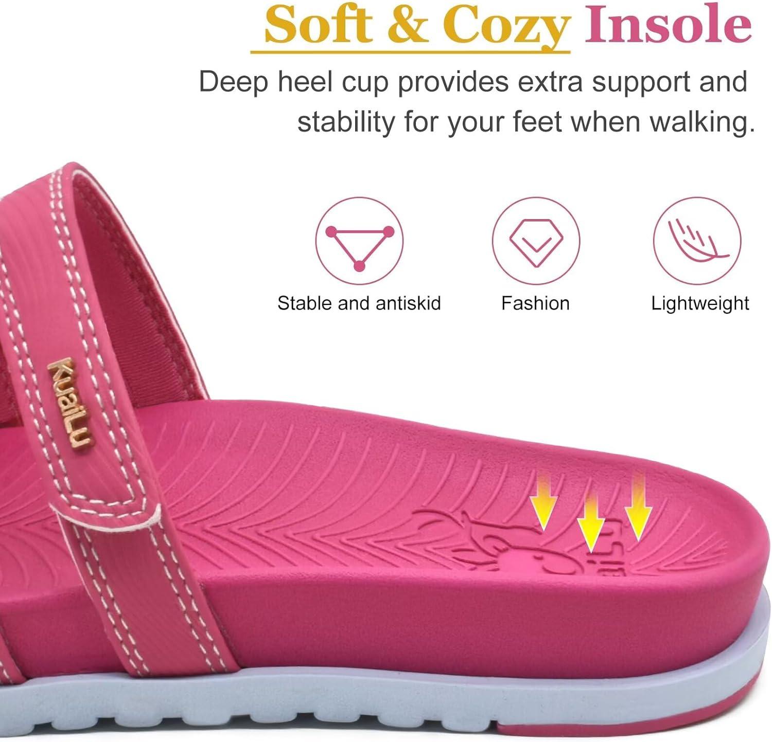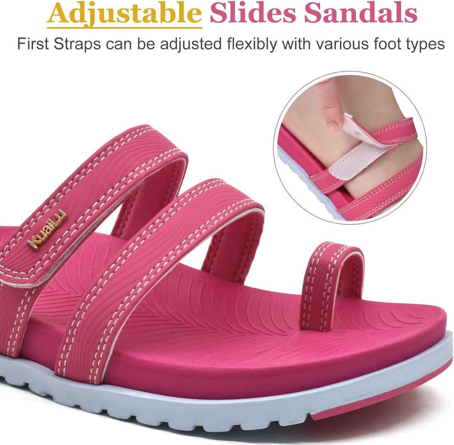 KuaiLu Womens Slides Sandals with Plantar Fasciitis Arch Support Fashion Comfort Adjustable Flat Sandals Ladies Lightweight Orthotic Slip on Sandals(Fuchsia)
