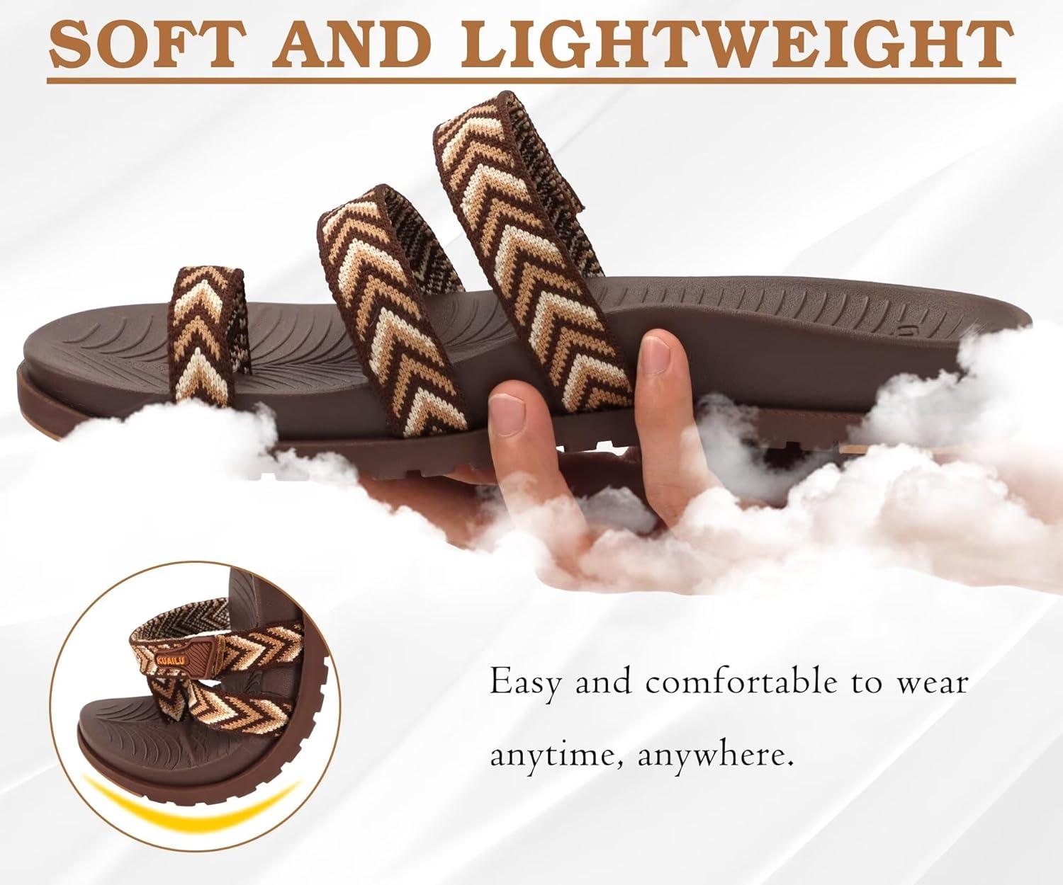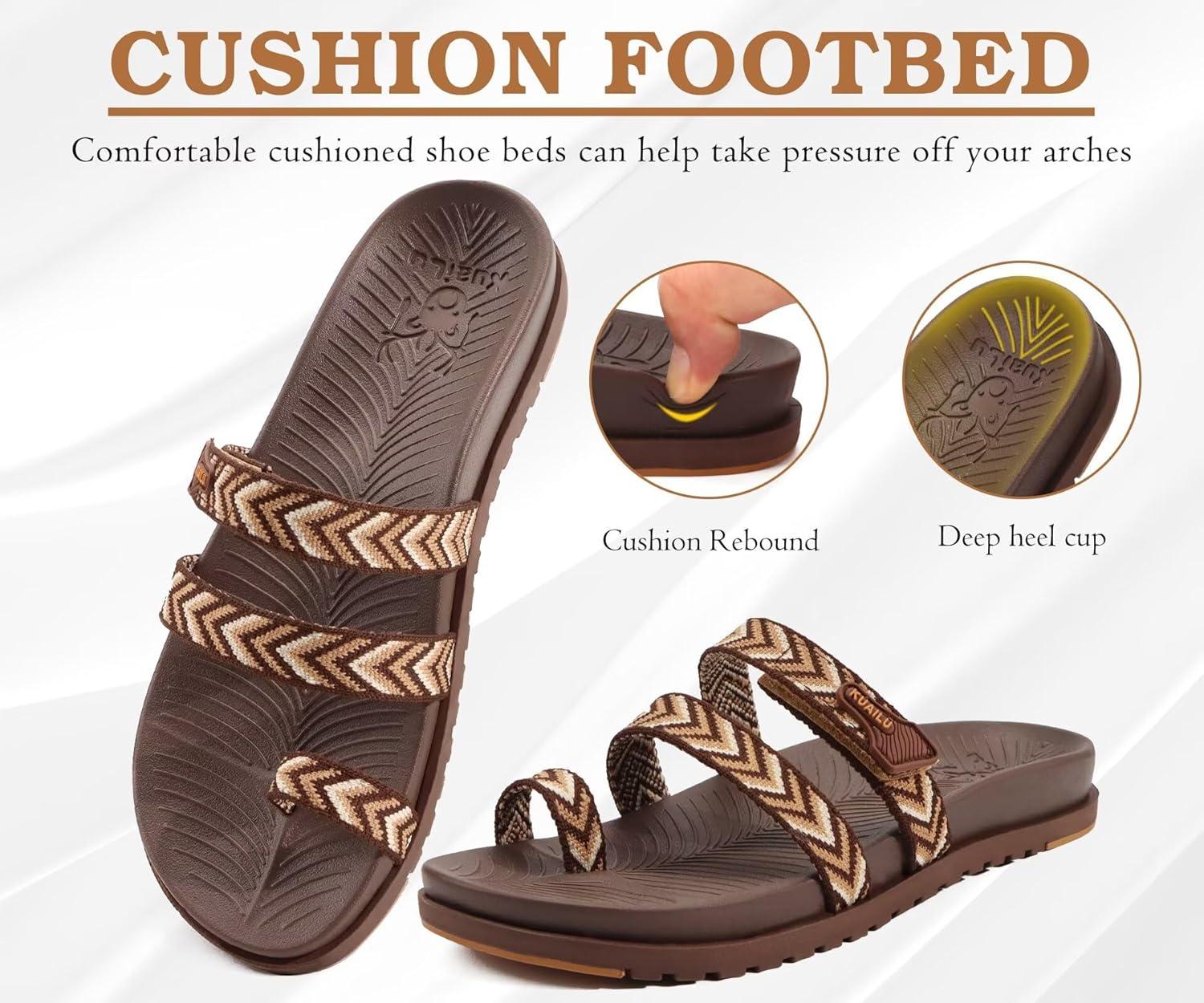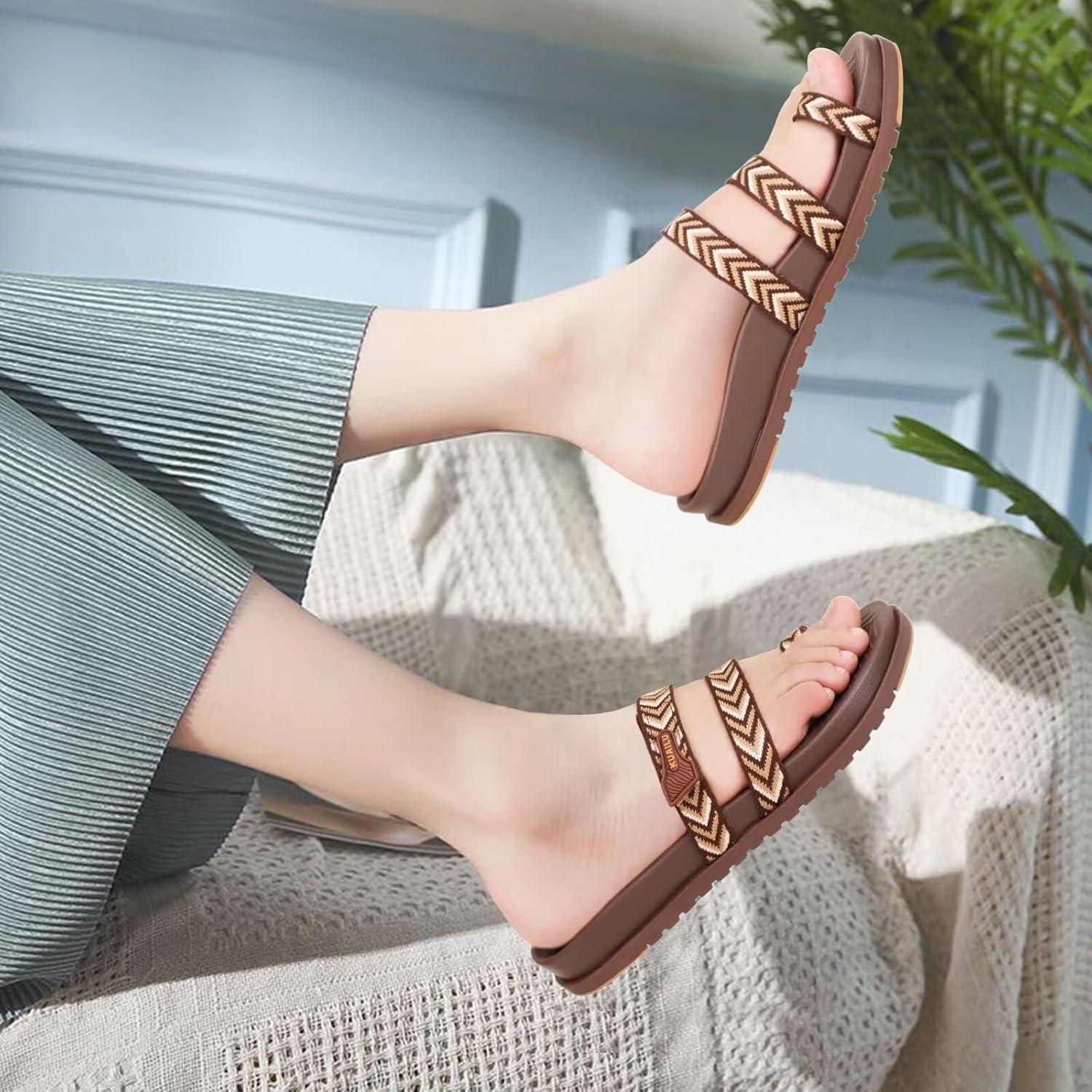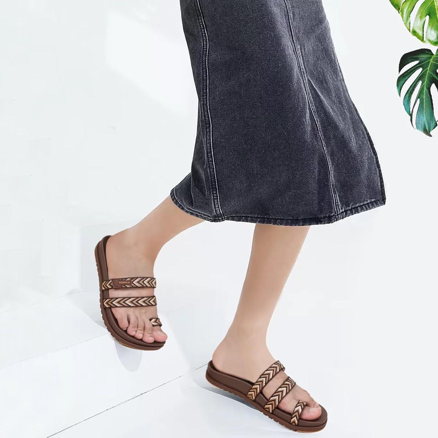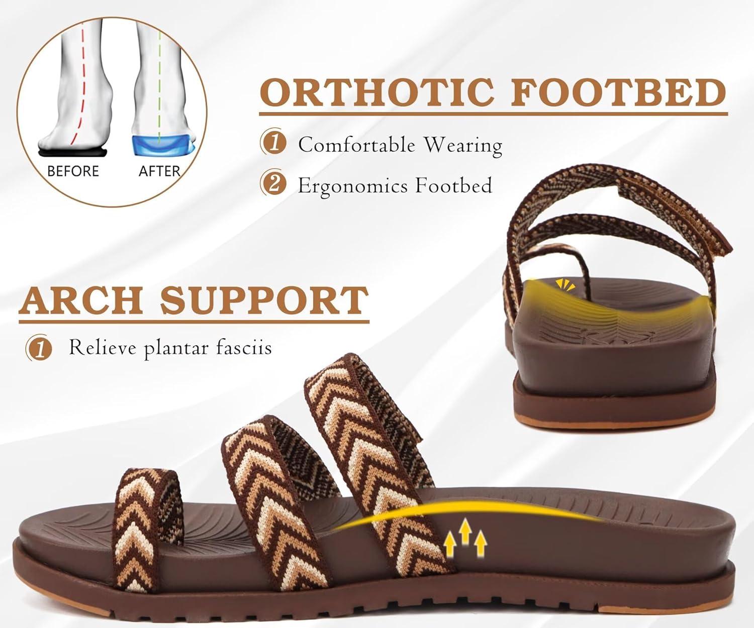 KuaiLu Womens Slides Sandals with Plantar Fasciitis Arch Support Fashion Comfort Adjustable Flat Sandals Ladies Lightweight Orthotic Slip on Sandals(Stylish Brown)