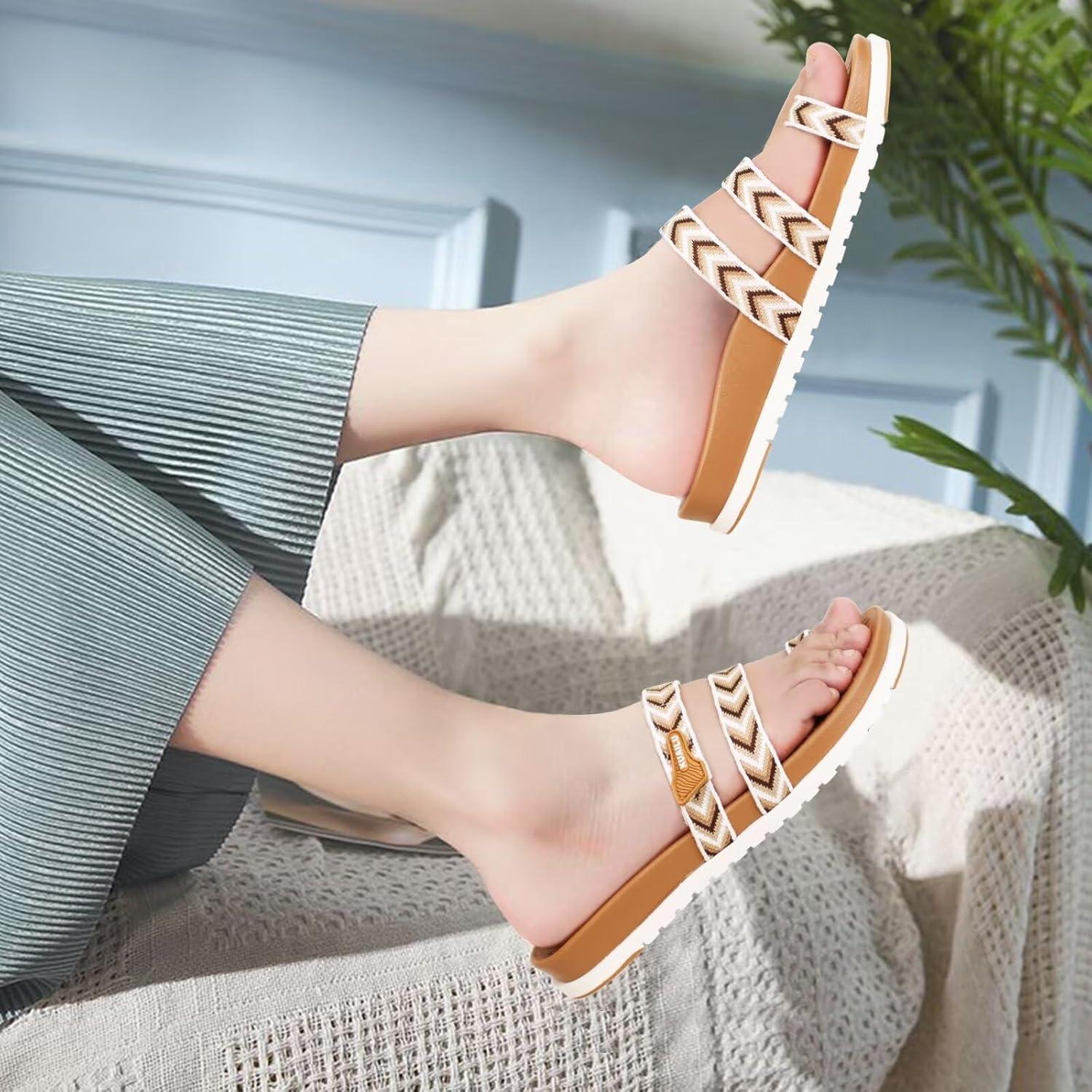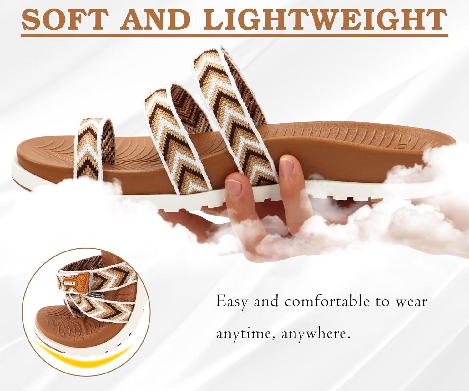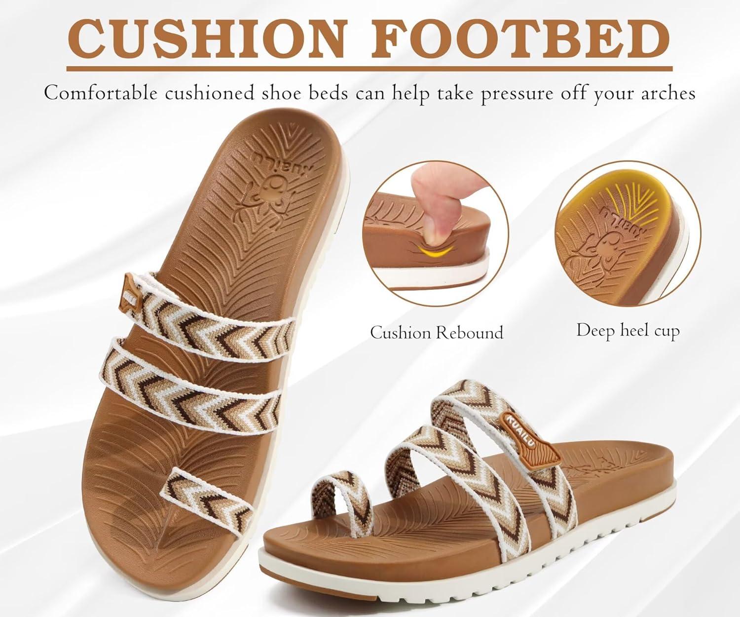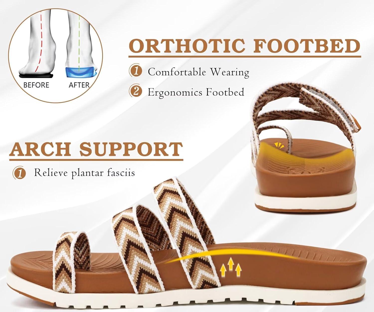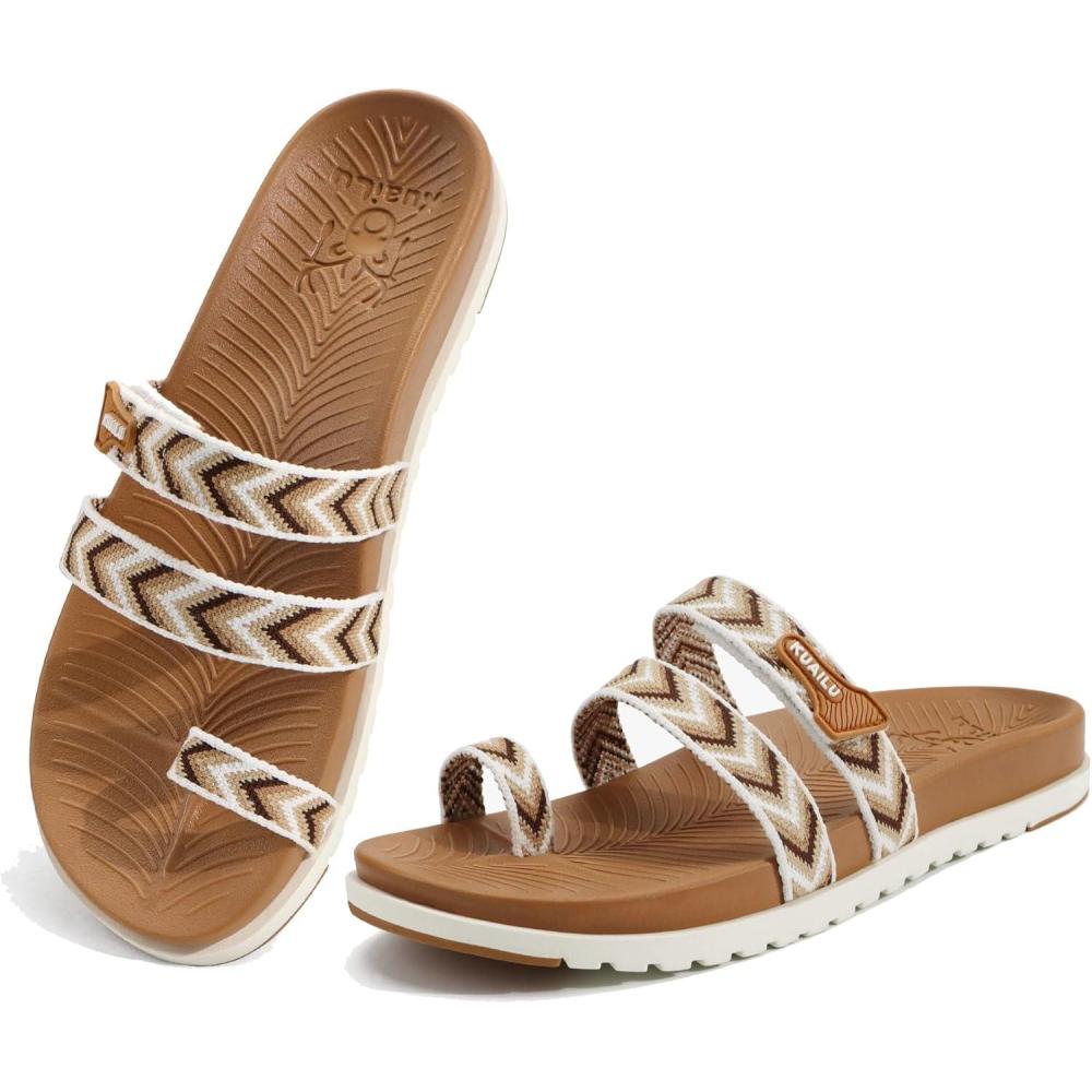 KuaiLu Womens Slides Sandals with Plantar Fasciitis Arch Support Fashion Comfort Adjustable Flat Sandals Ladies Lightweight Orthotic Slip on Sandals(Stylish White Khaki)