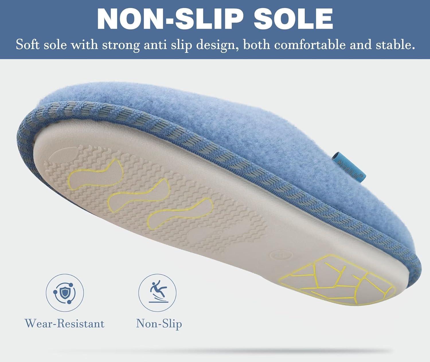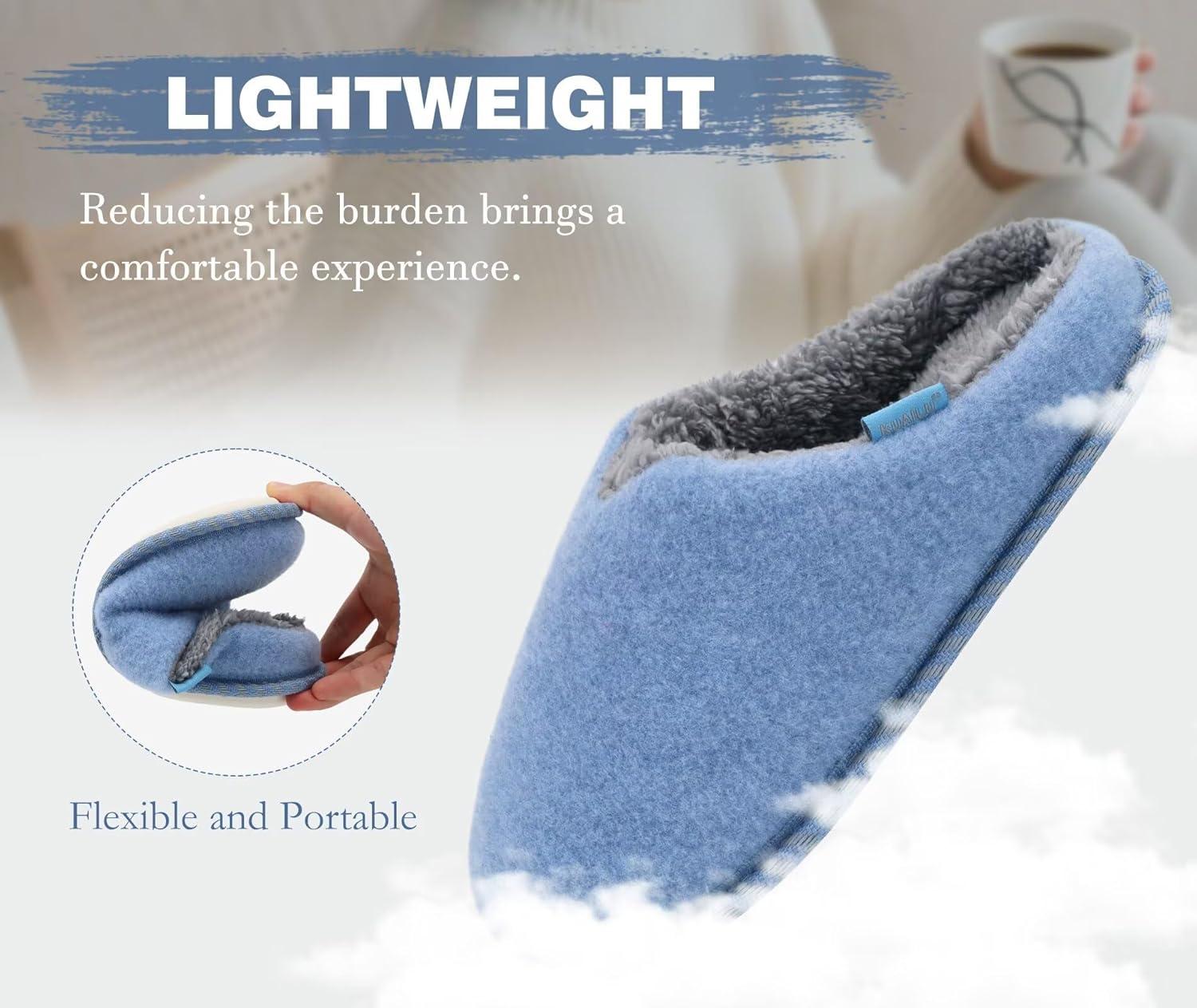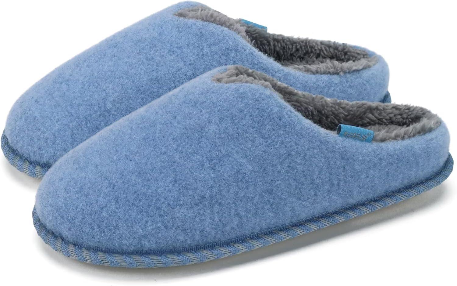 KuaiLu Womens Supportive Memory Foam Slippers Felt Fuzzy Lined Heel Cushion Lightweight House Shoes for Indoor Outdoor(Blue)