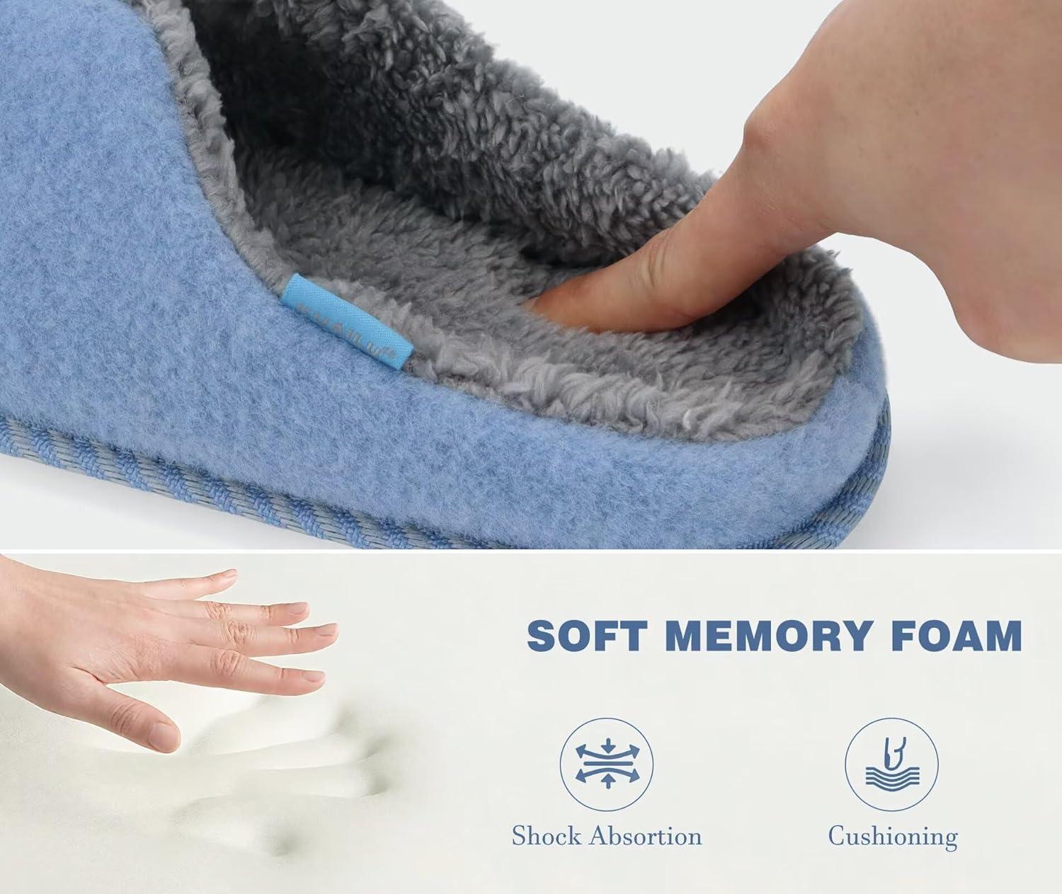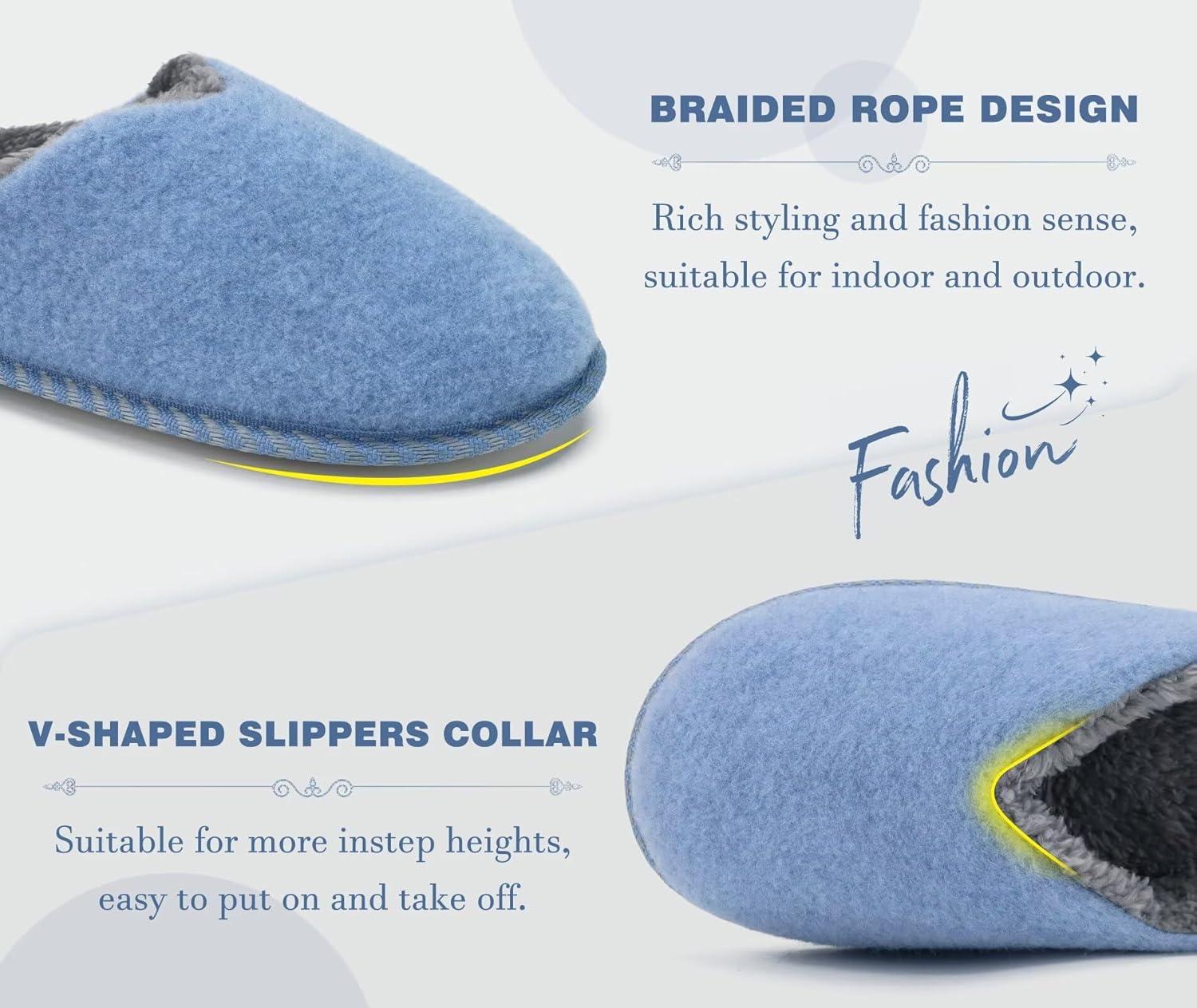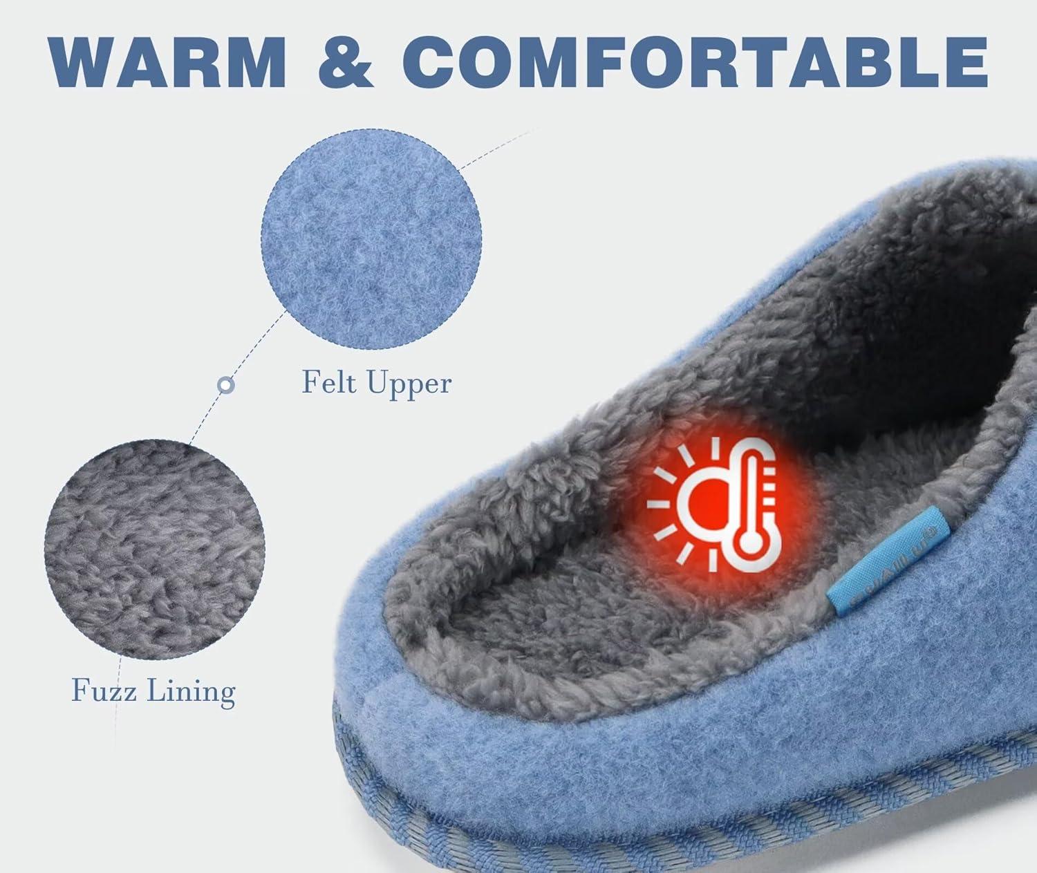 KuaiLu Womens Supportive Memory Foam Slippers Felt Fuzzy Lined Heel Cushion Lightweight House Shoes for Indoor Outdoor(Blue)