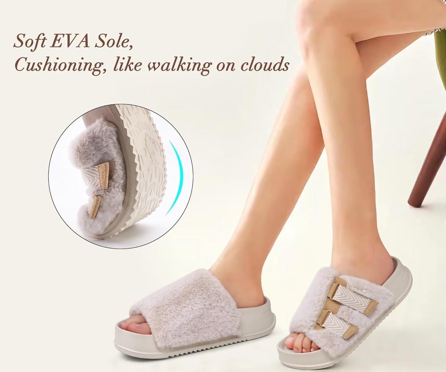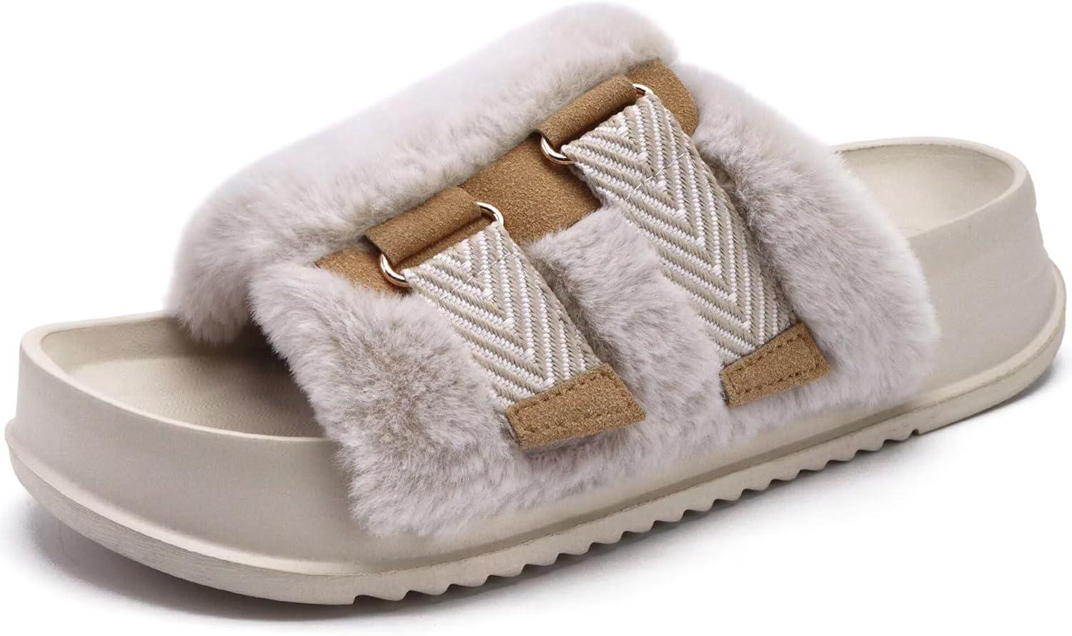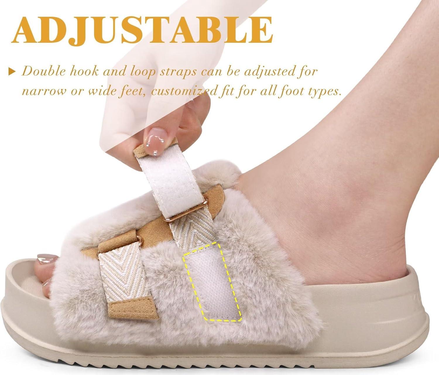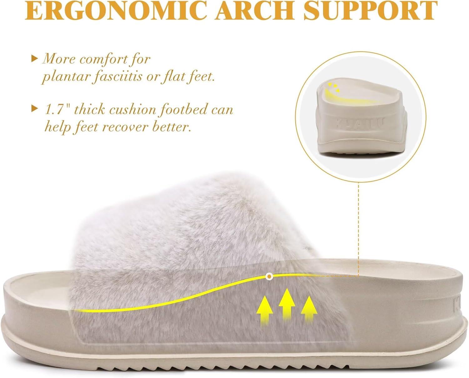 KuaiLu Womens Orthotic Sandals Comfortable Arch Support Faux Fur Sandal Slippers Casual Summer Adjustable Cushion Slides Slip On Indoor Outdoor House Shoes